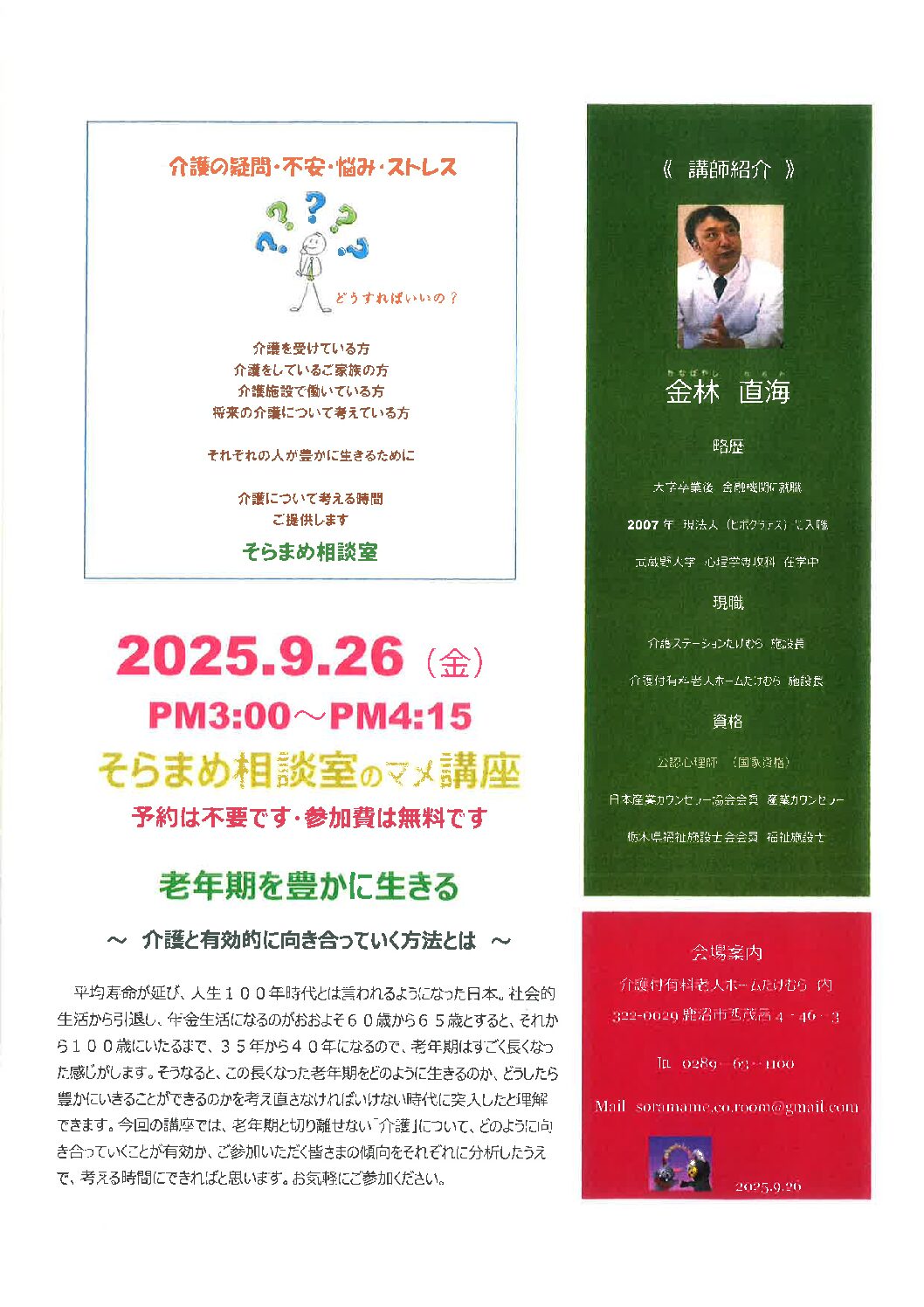 9月26日(金)PM3:00~PM4:15 そらまめ相談室のマメ講座を開催します。 どなたでも自由に参加できますので、このホームページをみて来ました!というかたも大歓迎です!!楽しいマメ講座ですのでぜひご参加ください。