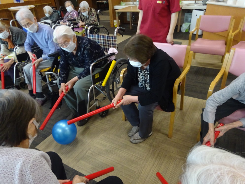 この日のレクリエーションは、ベンチホッケー。
