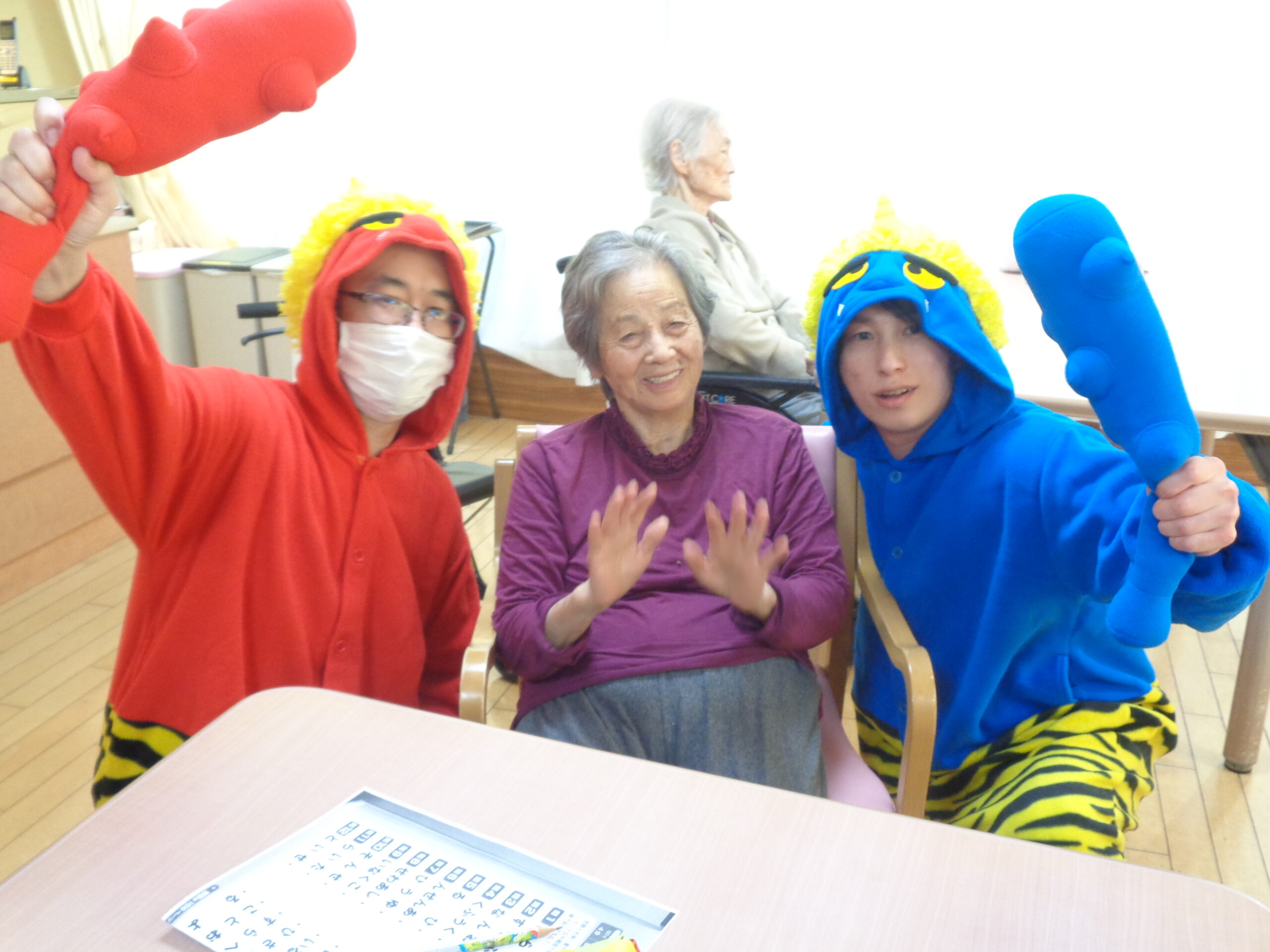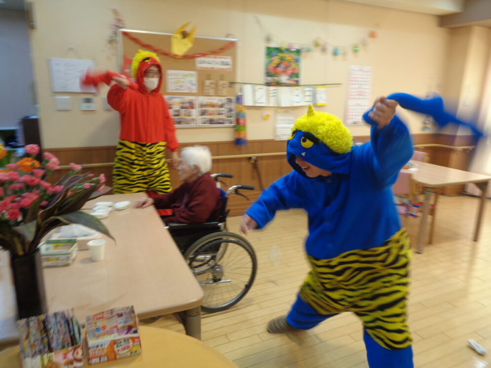 今年もみんなで豆をまいて鬼退治しました!!福がきますように♪